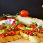 Geröstetes Baguette mit frischen Tomaten und Kräutern